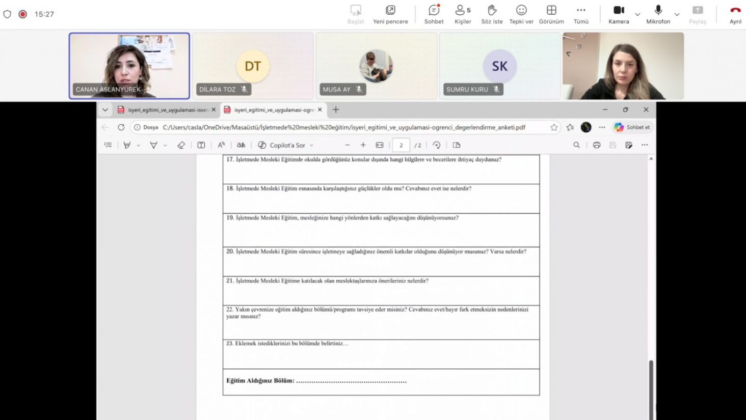 Bilgi Yönetimi Programı 2. sınıf öğrencilerine yönelik olarak, uygulanan 3+1 Eğitim Modeli kapsamında, işletmede mesleki eğitim (İME) sürecine ilişkin çevrimiçi bilgilendirme toplantısı gerçekleştirildi. Toplantıda, öğrencilerin eğitimlerinin son döneminde yapacakları işletmede mesleki eğitimin amaçları, uygulama takvimi, başvuru ve danışmanlık süreci, gerekli belgeler, devam–devamsızlık esasları ve değerlendirme ölçütleri hakkında bilgilendirme yapıldı. Program, öğrencilerden gelen soruların yanıtlanmasıyla tamamlandı.